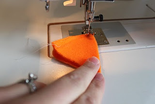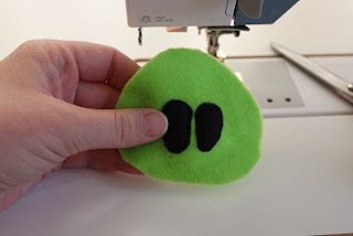 Circundo o focinho com mais um pedaço do feltro verde. Para esse passo precisaremos contar com o auxílio de uma máquina de costura.