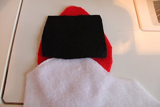 Siga costurando a parte que foi montada no passo anterior no feltro branco, isso irá formando a cabeça do seu pássaro vermelho.
